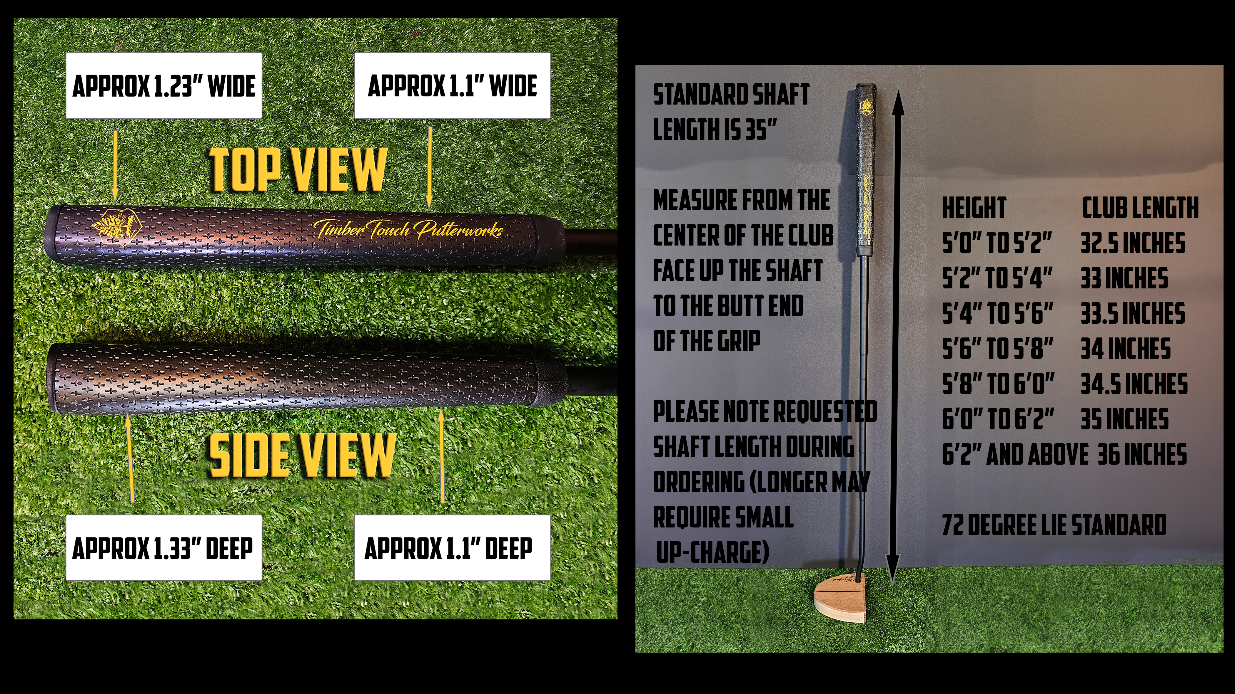 For putters where you would like the larger parts of the putter engraved, please contact us to quote the project. Most putters are engraved on the sole of the putter and on a portion of the top during production. We always have some putters in process that can be pulled from normal production to add more extensive engraving. Just reach out to us through our "Contact" area of the site and we will work out a great solution.