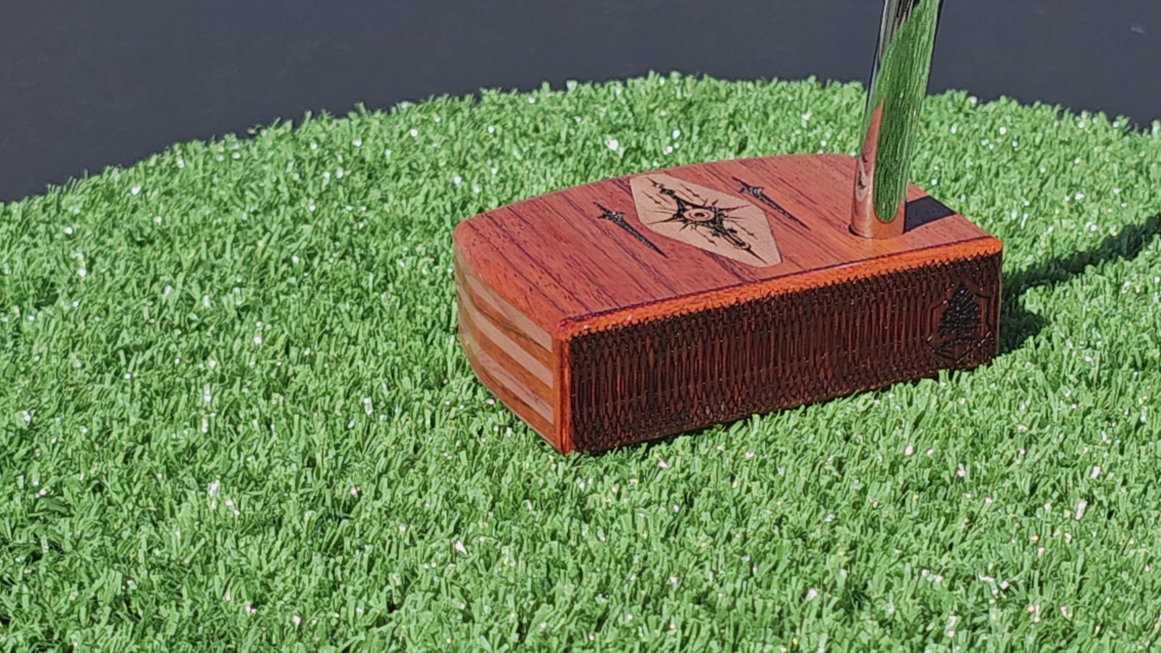 Layered Bloodwood and Red Cedar putter with decorative inlay