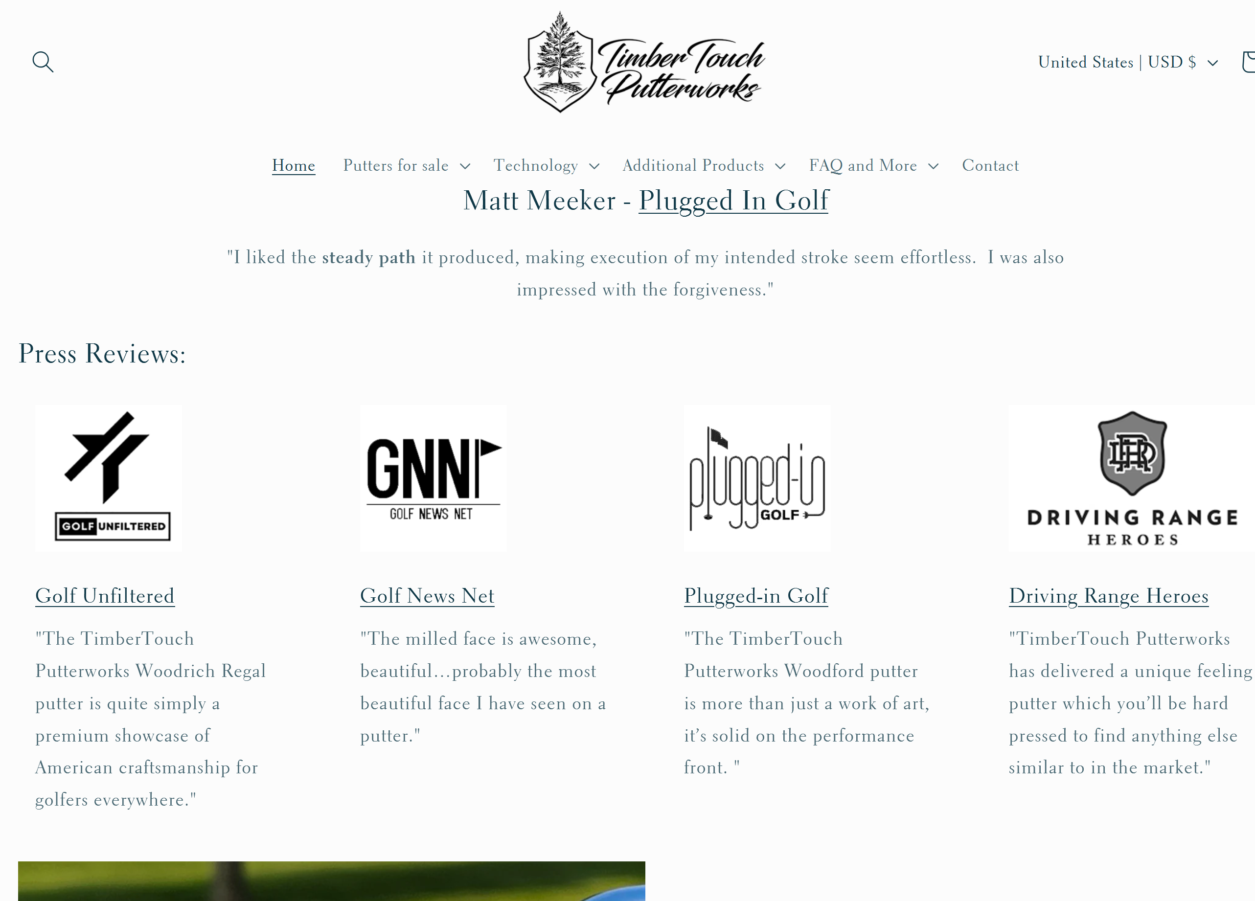 Timber Touch Putter Works began with a passion for blending traditional craftsmanship and modern design. After early challenges and countless trials, we discovered the unique benefits of using wood in putters, such as its exceptional feel and rich sound. Through embracing CAD design and CNC machining, we refined our process to ensure precision in every model. With a growing range of designs and positive feedback from golfers, TimberTouch has evolved into a brand known for its artistry and performance, committed to pushing boundaries and creating putters that stand out on the greens.