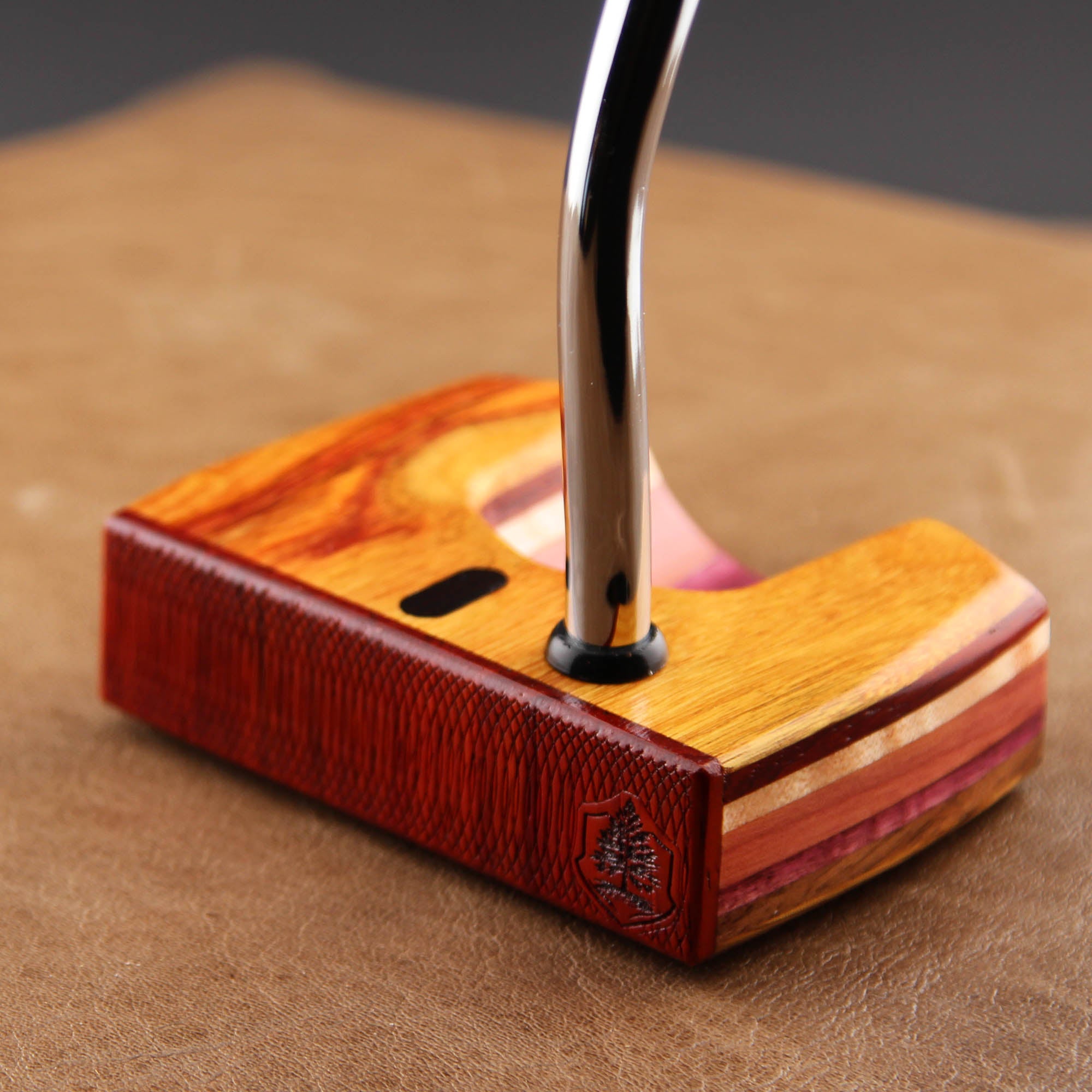 Auburn wood putter with exotic Padauk and Walnut body and inlay